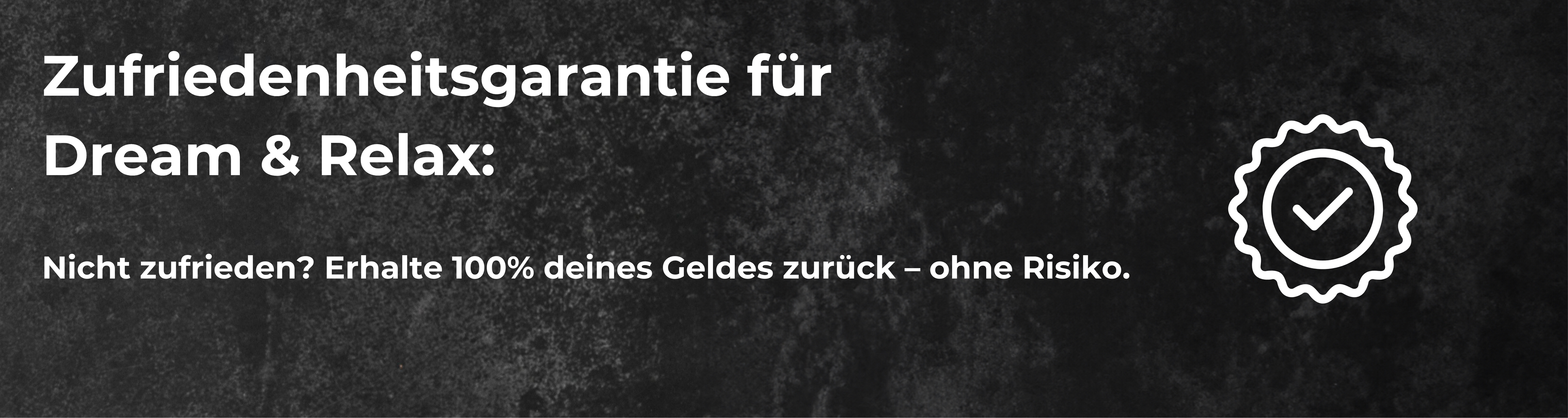 Wir sind überzeugt, dass du mit Dream & Relax erholsamen Schlaf und stressfreie Nächte erleben wirst. Solltest du jedoch nicht zufrieden sein, bieten wir dir eine 100% Geld-zurück-Garantie. Deine Zufriedenheit ist unsere Priorität.